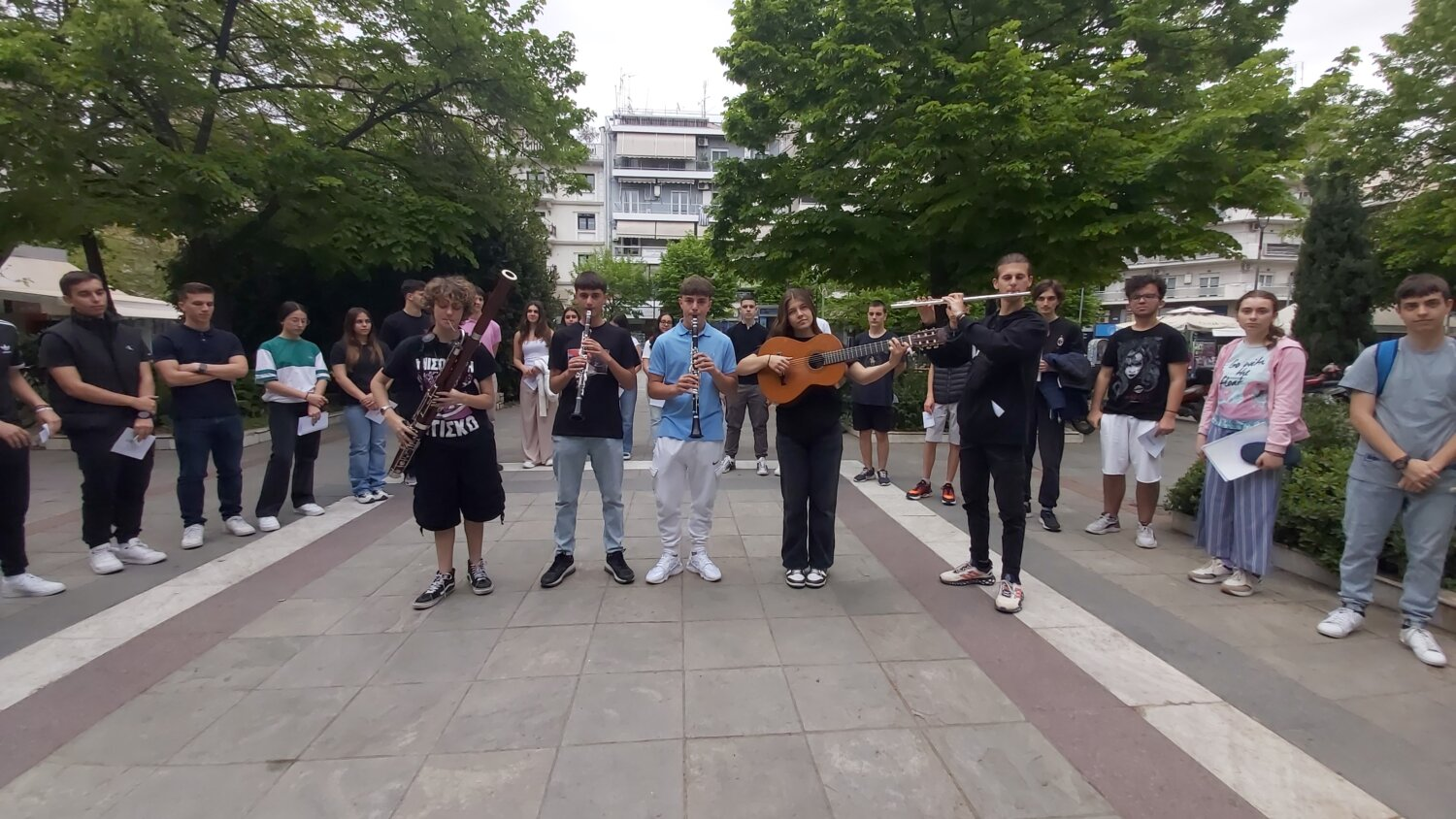 Τους μαθητές συνόδευαν από το 6ο Γενικό Λύκειο Λάρισας οι καθηγητές Άννα Αντωνούλη, Ζωή Γκατζιώνα, Κατερίνα Κοθρά, Θωμάς Μηλιούσης, Γιάννης Παπαγεωργίου και από το Μουσικό Σχολείο οι καθηγήτριες Βασιλική Κοσμάνου, Βάϊα Τζόκα, Ευθυμία Τσοτσάνη.